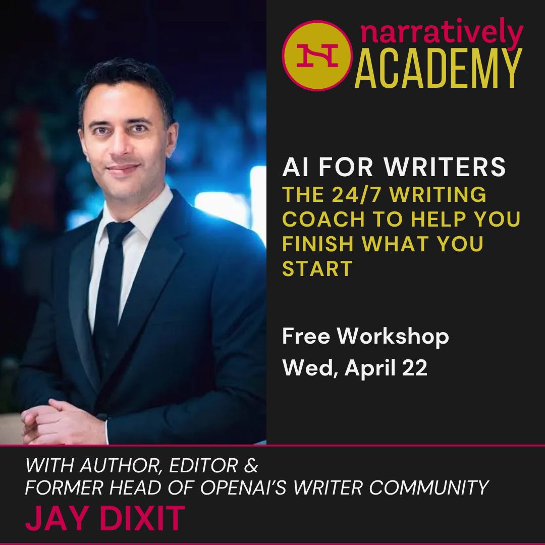 A free live workshop on how to use Claude or ChatGPT as a sounding board, thinking partner and personal trainer for writing — taught by OpenAI’s former Head of Writing Community.