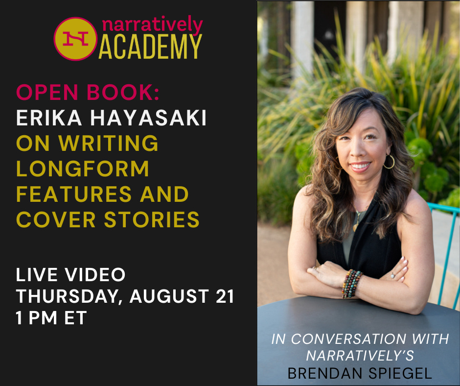 Pretty much anyone who’s ever started working in freelance journalism has hoped their career would look an awful lot like Erika Hayasaki’s. A former contributing editor at Narratively, Erika has written cover stories for The New York Times Magazine, WIRED, Newsweek and more, plus features for The Atlantic, The Guardian, National Geographic, Men’s Health, Elle, New York magazine, The Cut, and many other publications. She has a unique talent for finding human subjects whose lives illustrate big, important issues—and getting those people to open up and share their stories.