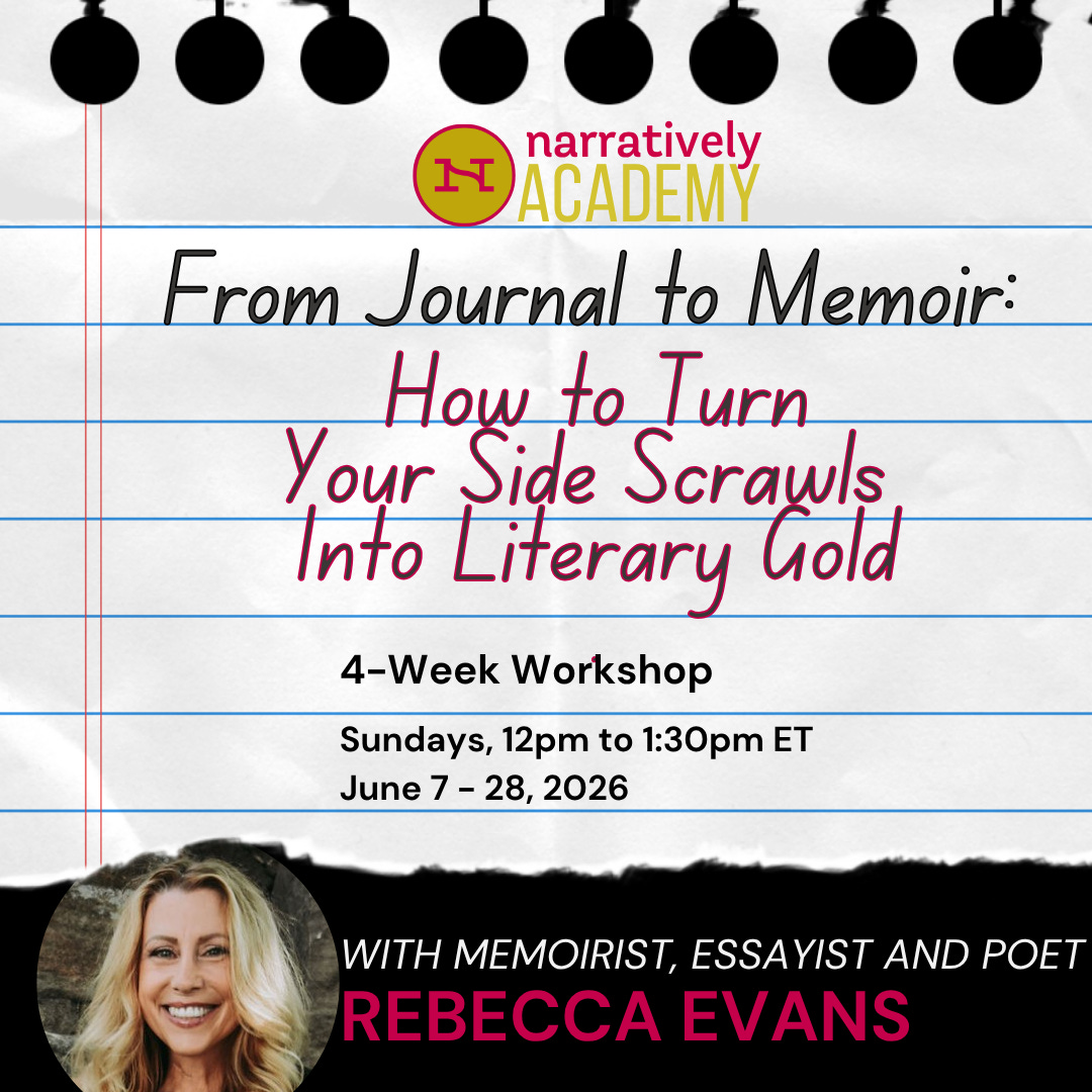 You’ve been writing your whole life—but how do you turn all those dog-eared notebooks into something you can publish? This class is for anyone with journals, Google Docs, or years of scattered material who’s ready to start shaping it into something bigger. Led by memoirist, essayist and poet Rebecca Evans, you’ll learn how to identify the throughline in your work, structure a compelling memoir, and begin turning fragments into a cohesive, book-length project.