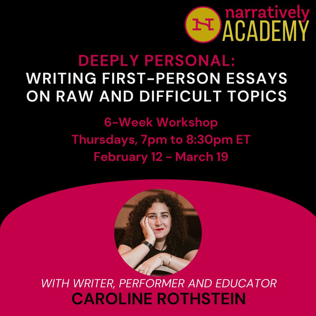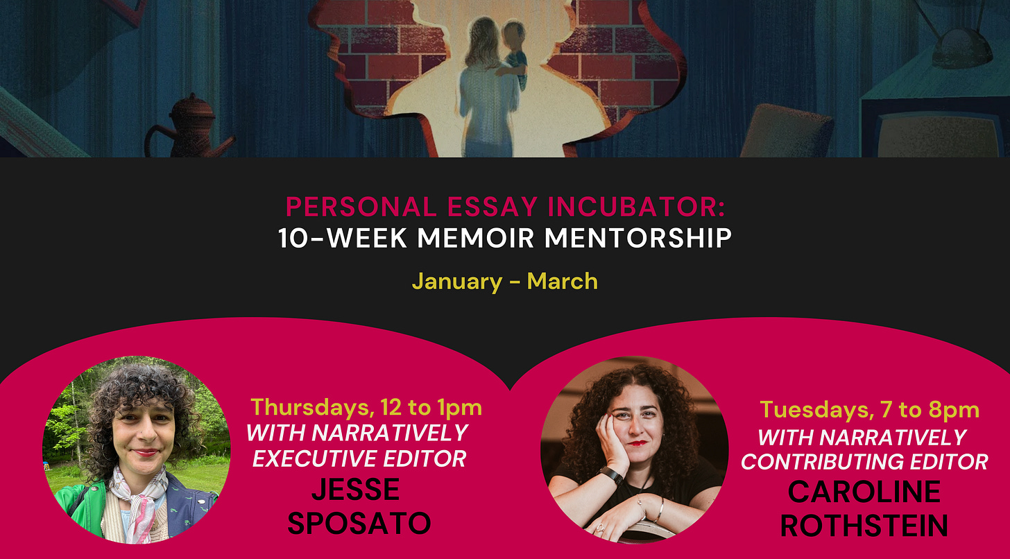 This fall, our first-ever Personal Essay Incubator sold out in like a millisecond, so we’ve gone ahead and launched not one but two sessions starting in January — one led by Narratively executive editor Jesse Sposato and one by Narratively contributing editor Caroline Rothstein. Each 10-week program is a unique opportunity for just six writers to learn the essentials of how to craft first-person pieces that resonate with editors and readers; develop an in-depth understanding of the personal essay marketplace; and learn how to refine your own work and polish it for publication.