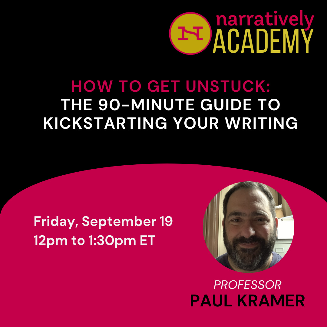 This class takes place on Friday, September 19 from 12pm to 1:30pm ET. All Narratively Academy classes are conducted online and accessible to students anywhere in the world. This class will be recorded and shared with all enrolled students.