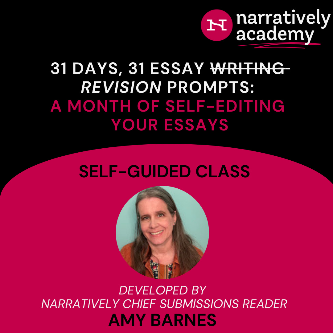 OK, so you’ve written some essay drafts—maybe even a lot of drafts—but now what? Does the idea of revision and editing strike fear in your creative heart? That’s natural, but it doesn’t have to be that way. This self-guided course is designed to help you tighten, strengthen, expand and contract your essays or memoir. It will help you add depth and background, make your narration shine, be more active with your word choices — in short, take what you’ve already written and prepare it for potential publication. Daily exercises and prompts include creating a narrator personality chart, finding the most resonant starting/point of your essay, and identifying ways to make your writing more active. The overall goal is to provide you with a self-editing toolbox of techniques you can use to polish your current drafts and perfect future essays.