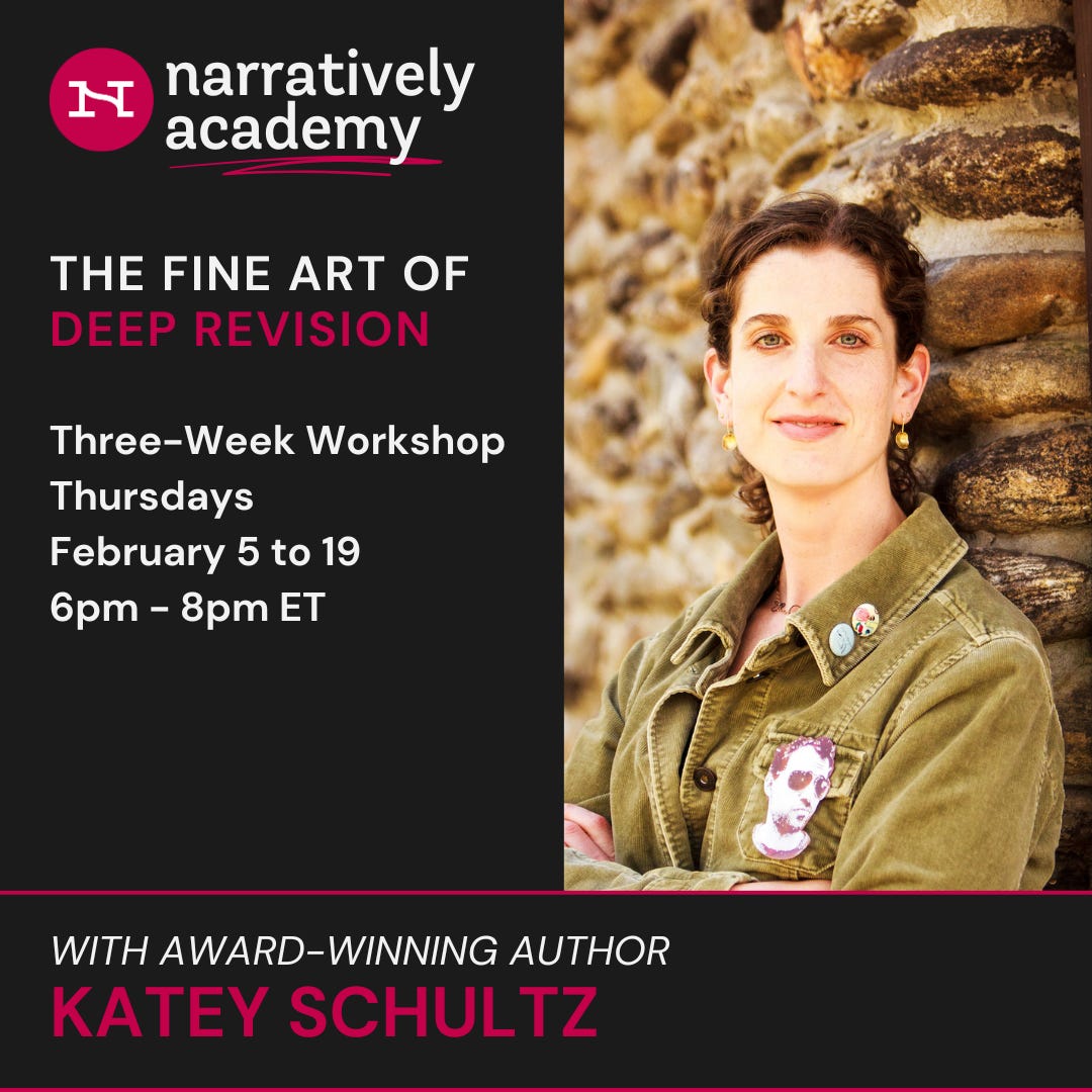 Writing a first draft can be challenging enough, but then comes the really hard part: revising your own work. This intensive three-session class is designed to empower writers with concrete, actionable revision techniques you can apply to memoir, essays, short stories or novels. Led by acclaimed author Katey Schultz, the former artistic director at Interlochen College of Creative Arts, this in-depth, hands-on class has been described by writers as a “game-changer” that has helped shift their approach to revision and inspired them to finish their next best draft.
