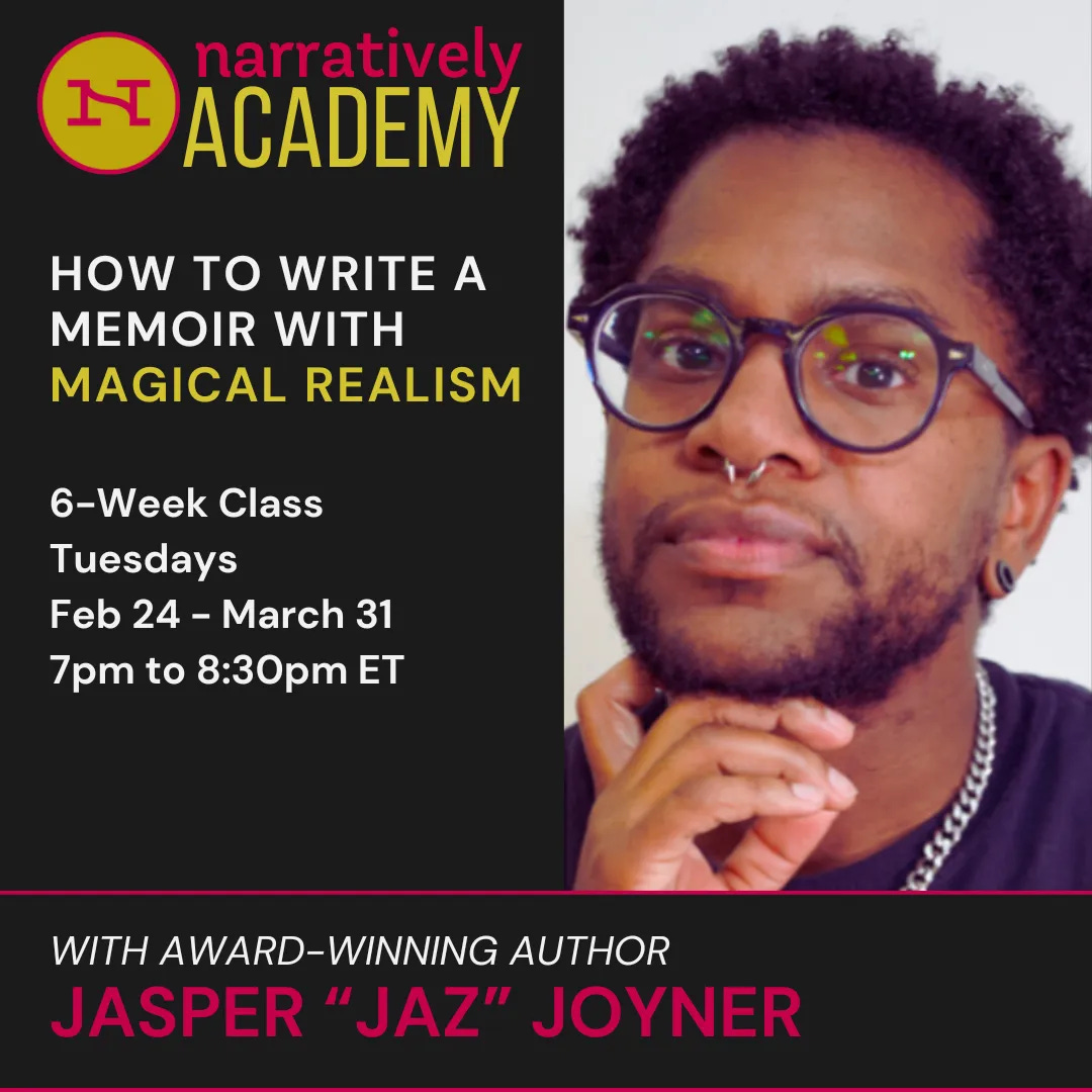 Also! One of the classes we’re most excited about right now (OK, yes, we say that about every class, but we are!) is How to Write a Memoir with Magical Realism with the wonderful Jasper "Jaz" Joyner (if you missed Brendan’s chat with him last week, you can check it out here), and it starts tomorrow! We have just a few spots left, but they’re going quickly, so this is your last reminder to sign up for it if you’d like to learn more about how to incorporate magical realism into your writing.