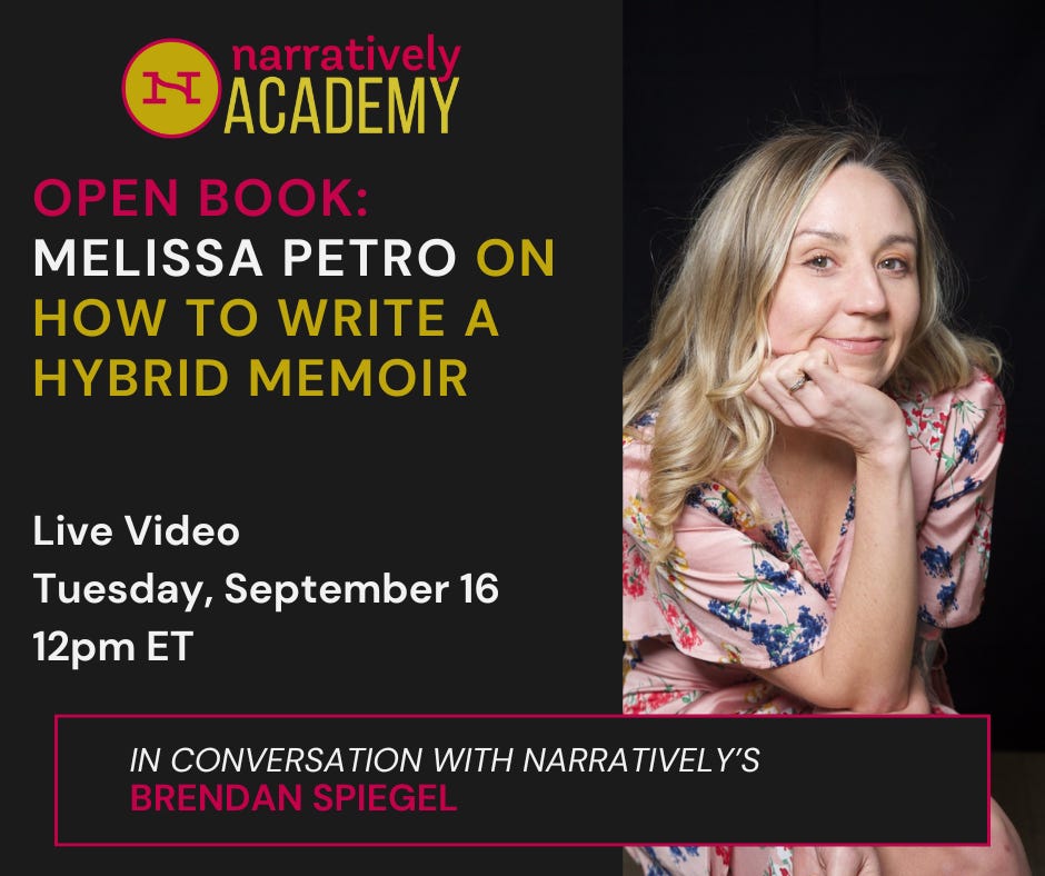 On Tuesday, September 16 at 12pm ET, Melissa will join us for an Open Book live video chat. We’ll talk about how she managed to flip traumatic life experiences on their head and spin them into literary gold; how she landed a book deal with a leading publisher; and how she combined her own experiences with extensive research to write a hybrid memoir. As always, come with any questions you have for Melissa!